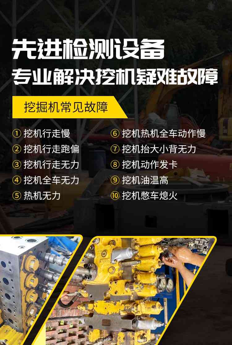 重慶永特工程機械維修有限公司(服務熱線:400-811-6707)組建于2000年, 擁有國內較專業的液壓系統調試臺和電腦診斷儀。公司成立以來,始終以“誠為本,信為先”為基本理念,服務廣大工程機械機主,獲得了廣大客戶的支持與信賴。憑借國內領先的檢測、調試、維修設備和經驗老道的維修技師,被稱為“西南地區專業的工程機械維修檢測中心”。